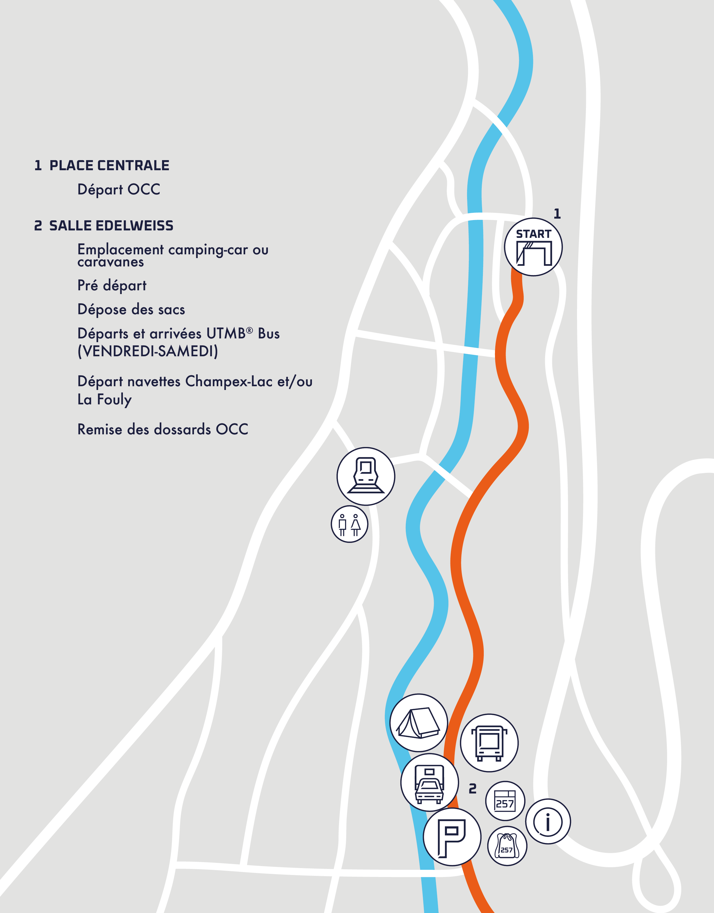 Attention : l’arrêt de train sur le plan est celui de Martigny-Croix et non la gare principale de Martigny où passe le Mont-Blanc Express